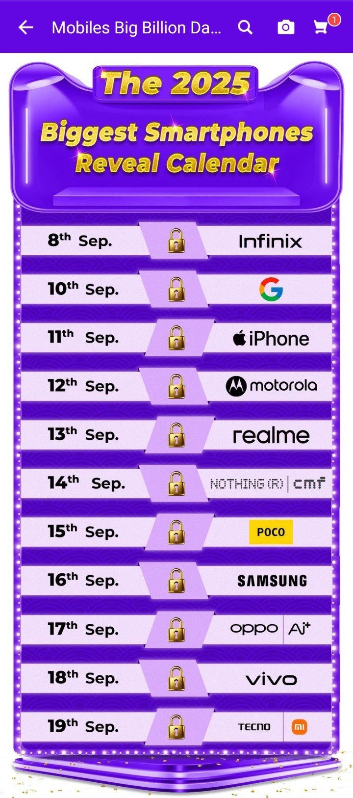 Now, let’s talk about the segment everyone loves – smartphones. Flipkart has already released a reveal calendar, giving us a sneak peek at the brands launching their biggest deals this September.