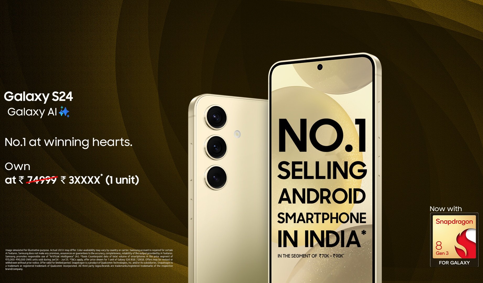 Samsung Galaxy S24 – Snapdragon 8 Gen 3, Now under 40000